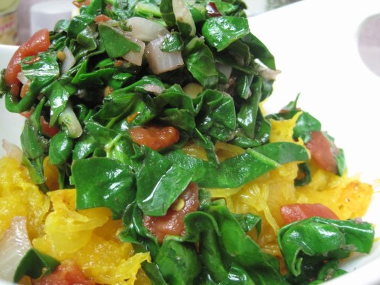 Spaghetti Squash with Swiss Chard & Tomato | The Gluten Free Vegan