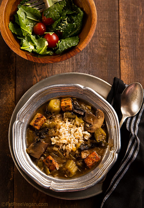 Mushroom and Tempeh Gumbo Recipe | recipe from FatFree Vegan Kitchen January 6, 2014 by Bill and Merre Davis 0 Mushroom and Tempeh Gumbo Recipe | recipe from FatFree Vegan Kitchen. Share this: Share on X (Opens in new window) X Share on Facebook (Opens in new window) Facebook Like Loading... Related