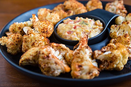 Roasted Cauliflower Bites with Vegan Nacho Cheese Sauce | recipe from FatFree Vegan Kitchen.