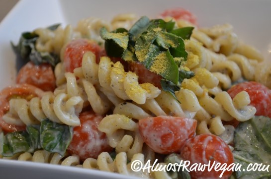 Creamy Vegan Alfredo Pasta, Cherry Tomatoes & Basil – Almost Raw Vegan February 4, 2014 by Bill and Merre Davis 0 Creamy Vegan Alfredo Pasta, Cherry Tomatoes & Basil – Almost Raw Vegan. Share this: Share on X (Opens in new window) X Share on Facebook (Opens in new window) Facebook Like Loading... Related