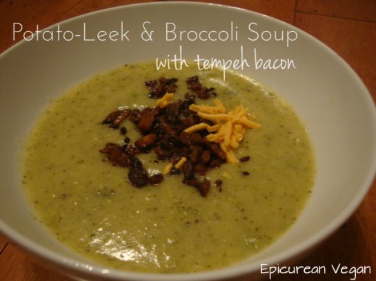 Potato-Leek & Broccoli Soup with Tempeh Bacon | Epicurean Vegan February 22, 2014 by Bill and Merre Davis 0 Potato-Leek & Broccoli Soup with Tempeh Bacon | Epicurean Vegan. Share this: Click to share on X (Opens in new window) X Click to share on Facebook (Opens in new window) Facebook Like Loading... Related