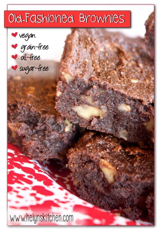 via Helyn’s Healthy Kitchen: Old-Fashioned Brownies. Vegan, Grain-free, Oil-free and Sugar-free!.