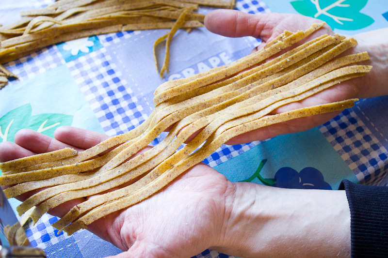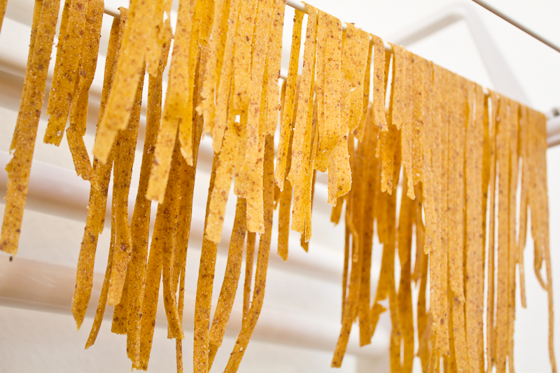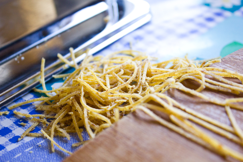 So, a friend got a pasta machine. And we tried our hands at homemade glutenfree pasta. And it was awesome. Since it´s not my recipe, I will just link to the original post by “back to her roots”. The only thing I changed was that I used more water.