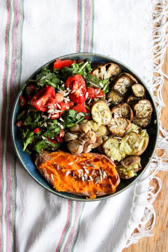 2 thoughts on “This Rawsome Vegan Life: ROASTED VEGGIES with BUTTERY GARLIC + SPINACH SALAD