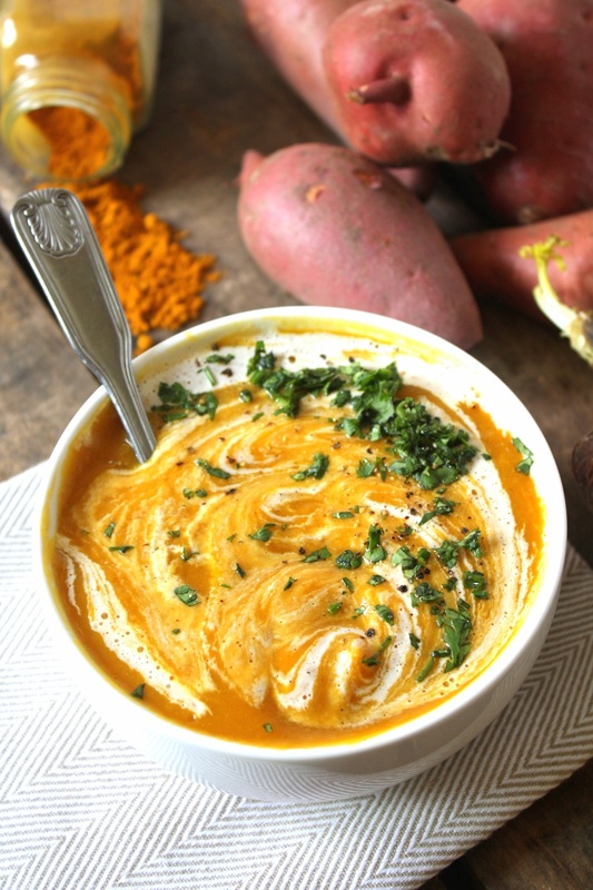 via Curried Sweet Potato, Carrot & Squash Soup with Pine Nut Cream – Fettle Vegan.