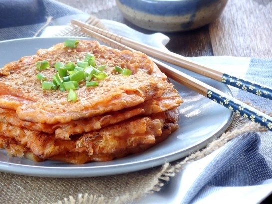 Vegan Kimchi Pancakes – Connoisseurus Veg January 4, 2015 by Bill and Merre Davis 0 Vegan Kimchi Pancakes – Connoisseurus Veg. Share this: Share on X (Opens in new window) X Share on Facebook (Opens in new window) Facebook Like Loading... Related