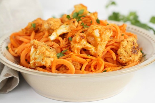 Buffalo Cauliflower With Sweet Potato Noodles [Vegan, Gluten-Free] | One Green Planet February 6, 2015 by Bill and Merre Davis 0 Buffalo Cauliflower With Sweet Potato Noodles [Vegan, Gluten-Free] | One Green Planet. Share this: Share on X (Opens in new window) X Share on Facebook (Opens in new window) Facebook Like Loading... Related