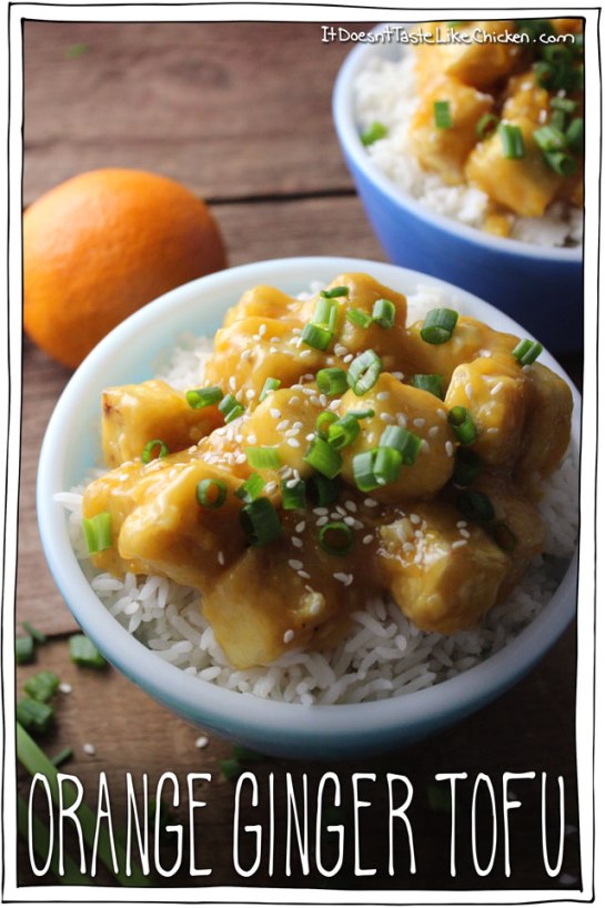 Orange Ginger Tofu. Sweet, sticky, ginger and orangey, kid-friendly. A healthier alternative to Chinese Orange Chicken. Vegan and gluten free recipe.