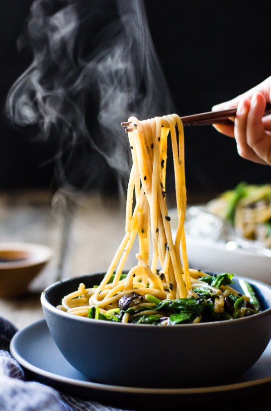 Source: Hot Sesame Rice Noodles with Asparagus, Shiitakes and Pea Shoots – The Bojon Gourmet