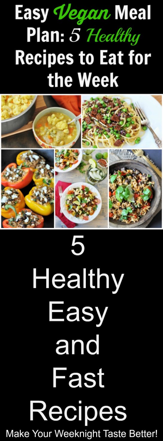 5 simple and quick weekday dinner recipes and a shopping list. Make healthy food and save some money with this vegan meal plan.