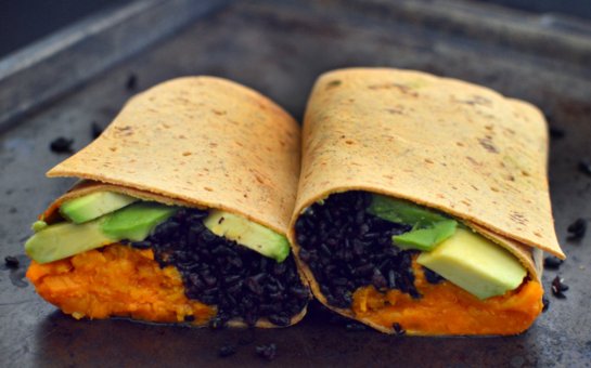 Source: Buffalo Sweet Potato, Black Rice, and Avocado Wrap [Vegan, Gluten-Free]