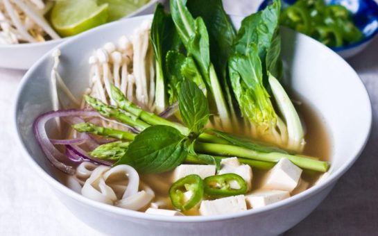 This aromatic vegan pho is the perfect year round dish that is easily customizable to all tastes and preferences. Bok choy, asparagus, mushrooms, tofu, and a generous helping of rice noodles are served in an incredibly simple and healthy traditional Vietnamese broth that is all about its seasonings and garnishes.