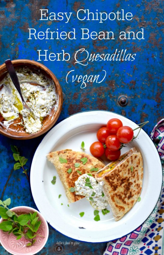 Easy Chipotle Refried Bean and Herb Quesadillas