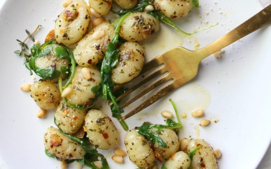 This recipe is surprisingly simple and stunningly delicious. The combination of browned butter, fresh herbs, wilted arugula, and pillowy gnocchi is always a winning combination and when you toss in some pine nuts you get a truly special dish.