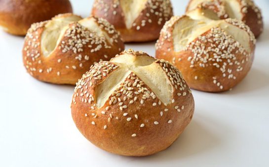These delightful pretzle buns are poached in hot water and baking soda before being baked so they have a crusty brown exterior but they’re soft and doughy inside. They’re perfect for making sandwiches or you can have them accompany your main course.