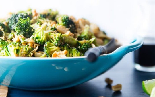 This crowd-pleasing broccoli salad is a no-cook side dish that could also function as lunch or dinner. Drizzled on top of the fresh, crunchy broccoli is a creamy peanut sauce that adds the perfect amount of sweetness and salty flavor. That’s not all. The salad also has a underlying flavor of coconut, a tangy bite of fresh lime, salty notes of soy sauce, and the most perfect pow of spicy ginger and sriracha that warm your throat as you munch through crisp broccoli, water chestnuts, and crispy roasted peanuts. It’s quick, easy, gluten-free, and vegan with a paleo option!