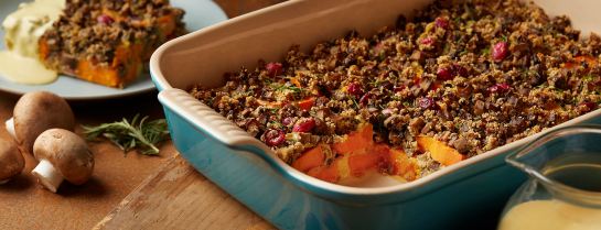 Source: Sweet Potato Casserole with Herbed Mushroom Stuffing – Plant-Based Vegan Recipe