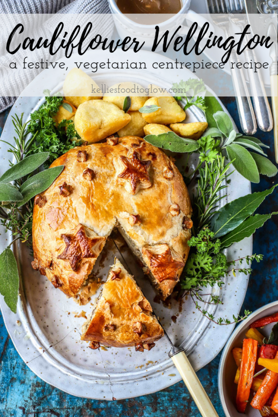 Cauliflower and Porcini Mushroom Wellington is the ultimate vegetarian centrepiece dinner recipe. Easy to prepare, and goes with all of the usual Christmas dinner trimmings.