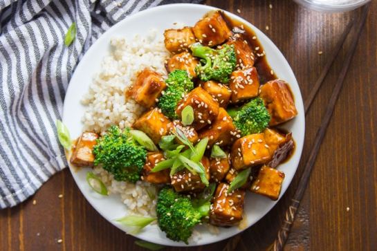 This crispy teriyaki tofu is better than takeout and easy enough for a weeknight dinner! Crispy tofu nuggets are baked (not fried!) and smothered in sticky sweet and savory teriyaki sauce. Serve with rice and steamed veggies for a knock-your-socks-off vegan meal.