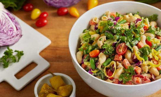 Source: Chopped Veggie Salad with Pasta and Creamy Cauliflower Dressing