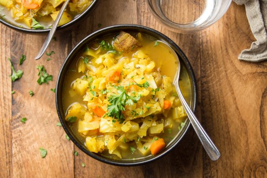 This vibrant cabbage soup is super satisfying and packed with flavor! Spiced with curry powder and studded with hearty potatoes, carrots and celery.