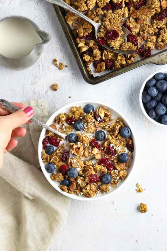 You’ll never buy store-bought again after trying this Vegan Granola. It’s lightly sweetened and the crunchy clusters are loaded with oats, nuts, and fruit.