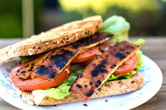 A smoky tofu bacon with just a hint of maple sweetness. Add lettuce, some freshly sliced tomatoes,and a bit of my White Bean Mayo and you got a perfect BLT.