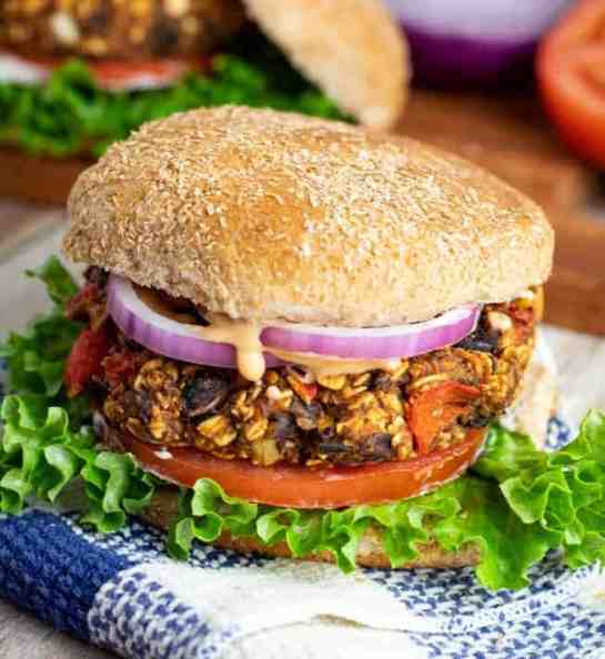 This best black bean burger vegan recipe gets some of the the highest reviews on our website. People love that the patties are firm and can even be cooked on the grill without falling through.