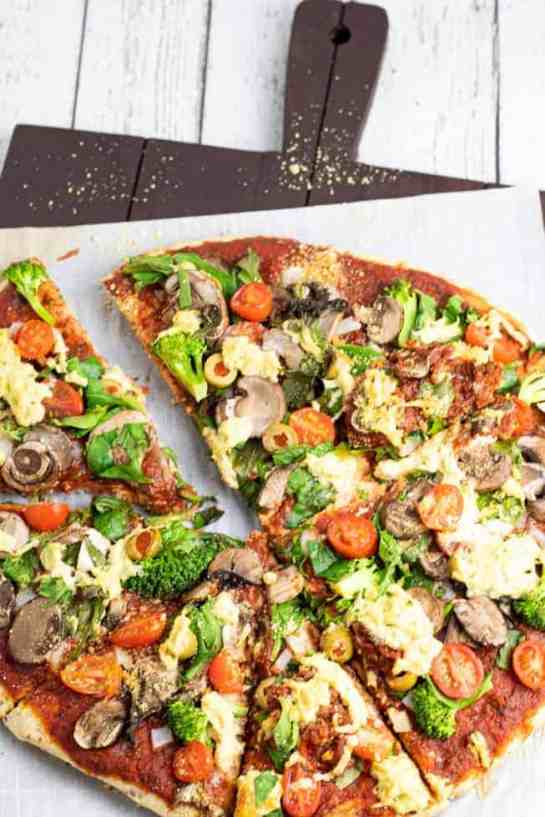 Sometimes I’m just tired and don’t feel like cooking. On those days at my house, we are very likely to make this gluten-free vegan pizza recipe. It is so easy to prepare and can be ready in minutes. There are a couple of cheese sauce options here.
