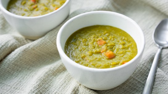 Made with just a few ingredients — green split peas, onions, carrots, and celery and a few herbs and spices — this healthy, hearty and comforting split pea soup is so easy to make that we are sure it will become a staple recipe. Make this oil/fat free. Lose the olive oil and saute your onions in broth or water.