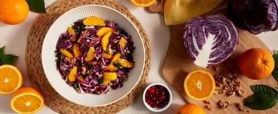 Red Cabbage and Orange Salad with Cranberries and Walnuts