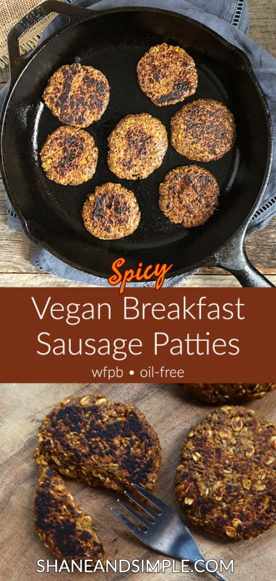 Spicy vegan breakfast sausage patties made with oats. Hearty, smoky, savory, spicy and gluten-free! The perfect addition to any breakfast.