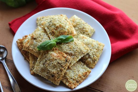 An appetizer the whole family will love. Fried ravioli in the air fryer – seasoned with basil, oregano, nutritional yeast, and garlic.