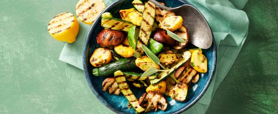 Baby squash and mushrooms are grilled fork-tender and infused with fresh herb flavor in this summery side dish. Get the recipe here!