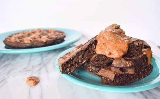 They’re packed with protein, healthy fiber, and then topped with a gooey peanut butter sauce so you’ll have fuel all day. Plus, these waffles sticks are soft, chewy, rich, and chocolatey which means that they are pretty much the best breakfast ever.