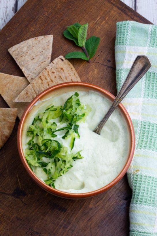 This healthier, lower-fat version of tzatziki sauce is super simple to make and delicious on everything from salads and grilled veggies to its traditional use as a dip for falafels and other Greek foods.