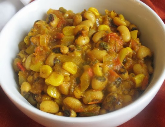 Black-Eyed Peas Simmered in a Spicy Tomato Sauce with Corn | Lisa’s Kitchen | Vegetarian Recipes | Cooking Hints | Food & Nutrition Articles