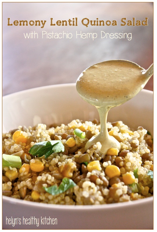 Helyn’s Healthy Kitchen: Lemony Lentil Quinoa Salad with Pistachio Hemp Seed Dressing January 15, 2014 by Bill and Merre Davis 0 Helyn’s Healthy Kitchen: Lemony Lentil Quinoa Salad with Pistachio Hemp Seed Dressing.