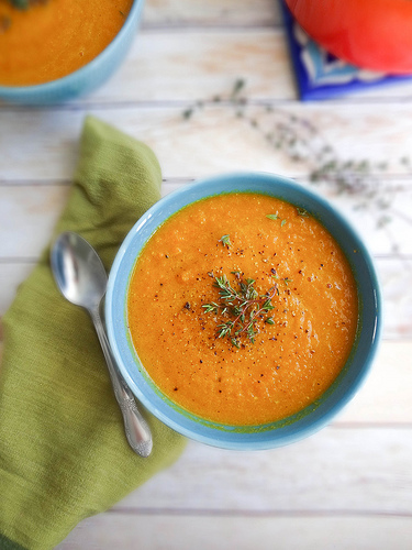Sunday Morning Banana Pancakes: garlicky roasted carrot soup.