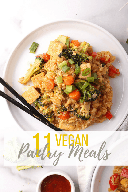 11 Vegan Pantry Meals made from non-perishable and canned goods to have on hand. Hearty dinner meals the whole family will love.
