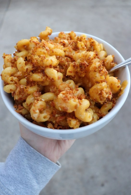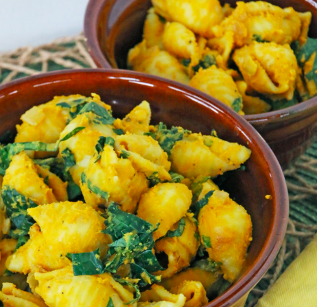Here’s a slightly spicy, flavorful, much healthier vegan recreation of an old favorite: Mac and Cheese.