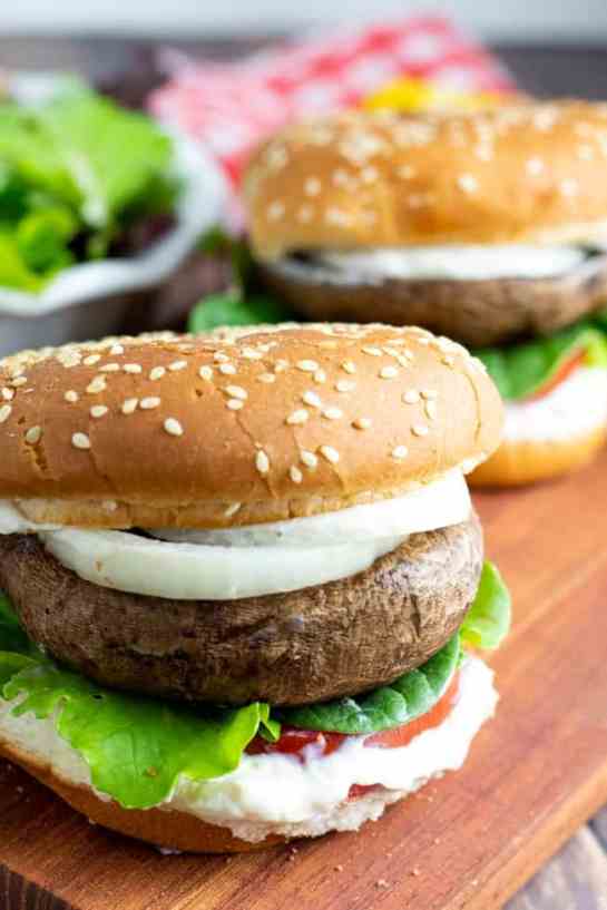 Thick, juicy, tender, and hearty, these are the ribeyes of veggie burgers! Grilled or baked in the oven, you can’t go wrong with a Portobello burger.