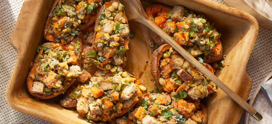 These scrumptious stuffed sweet potatoes are worthy of center stage on the Thanksgiving table. Try this vegan recipe today!