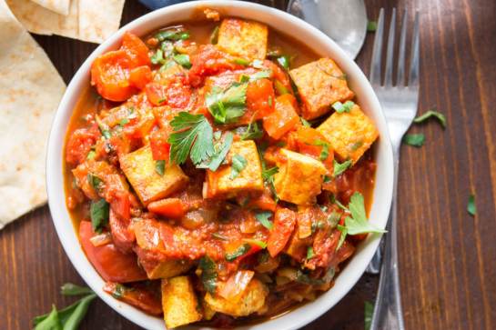 This vegan spin on shakshuka is made with spinach and lemony pan-fried tofu (in place of eggs!) in a smoky tomato and red pepper sauce. It’s perfect for breakfast or dinner, and absolutely delicious scooped up on crusty pita wedges.